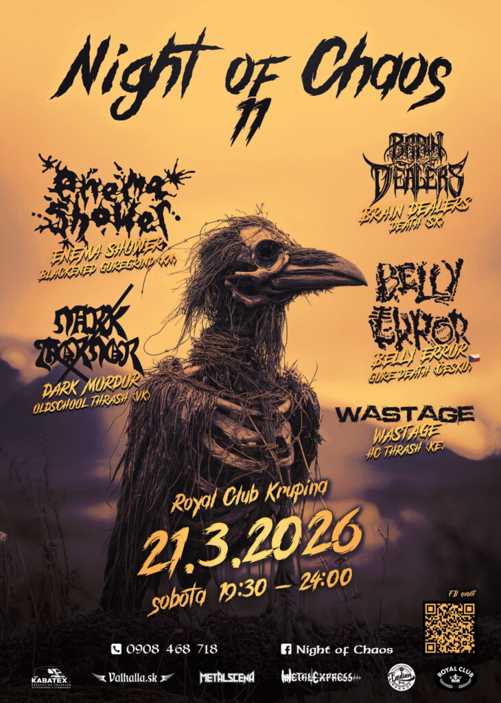V srdci malebného mestečka Krupina sa odohrala ďalšia metalová metelica – Night of Chaos 11 – a tentoraz mala silnejší náboj než zvyčajne. Nešlo len o koncert. Bola to posledná akcia v Royal Clube, priestore, ktorý celej tejto sérii dodával špecifický šmrnc a atmosféru.