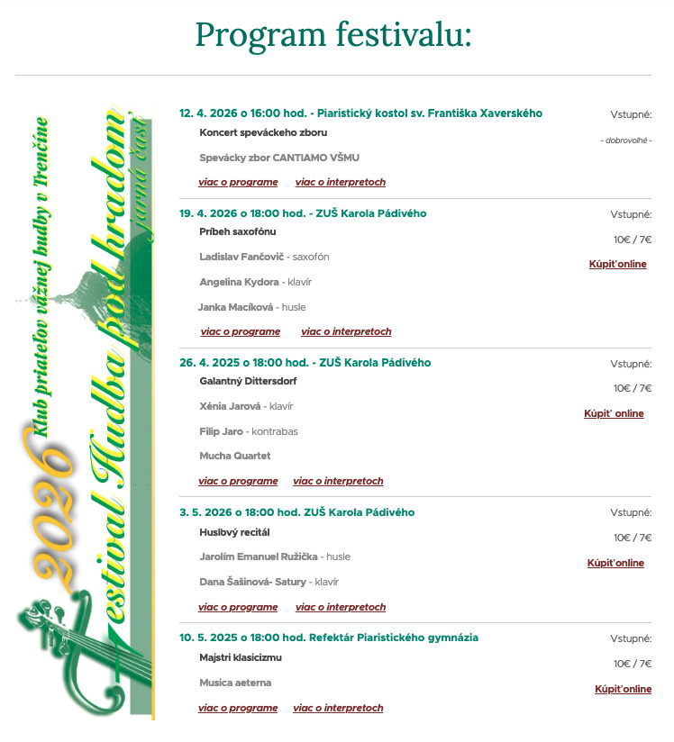 Hudba pod hradom v Trenčíne: komorný festival vážnej hudby s tradíciou